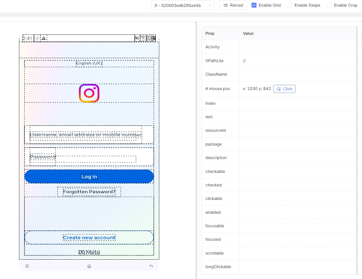 Enable Grid: Turns on the element grid interface to identify elements more accurately.