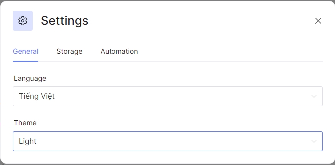 Setting is the basic configuration section for the software, such as language, storage, etc.